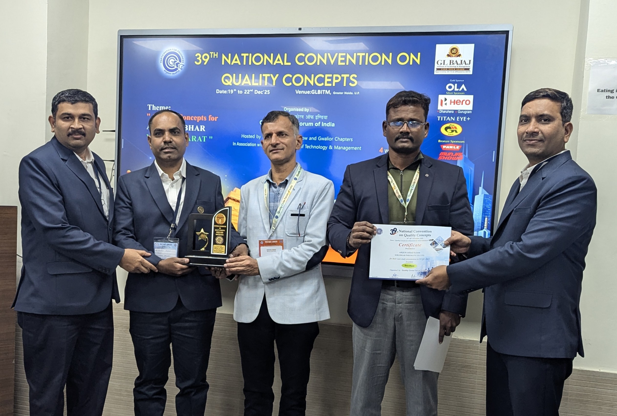 Kirloskar Pneumatic Company won five Excellence Award Trophies at the 39th National Convention on Quality Concepts (NCQC – 2025), held from 19th to 22nd December 2025 at GL Bajaj Institute of Technology & Management (GLBITM), Greater Noida, Uttar Pradesh.